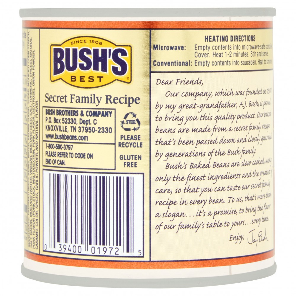 Ingredients: Prepared White Beans, Water, Brown Sugar, Sugar, Modified Corn Starch, Salt, Bacon, Mustard (Water, Vinegar, Mustard Seed, Salt, Turmeric, Spices), Natural Pork Flavor (Pork Stock, Maltodextrin, Pork Flavor, Dextrose), Onion Powder, Caramel Color, Spices, Garlic Powder, Natural Flavor