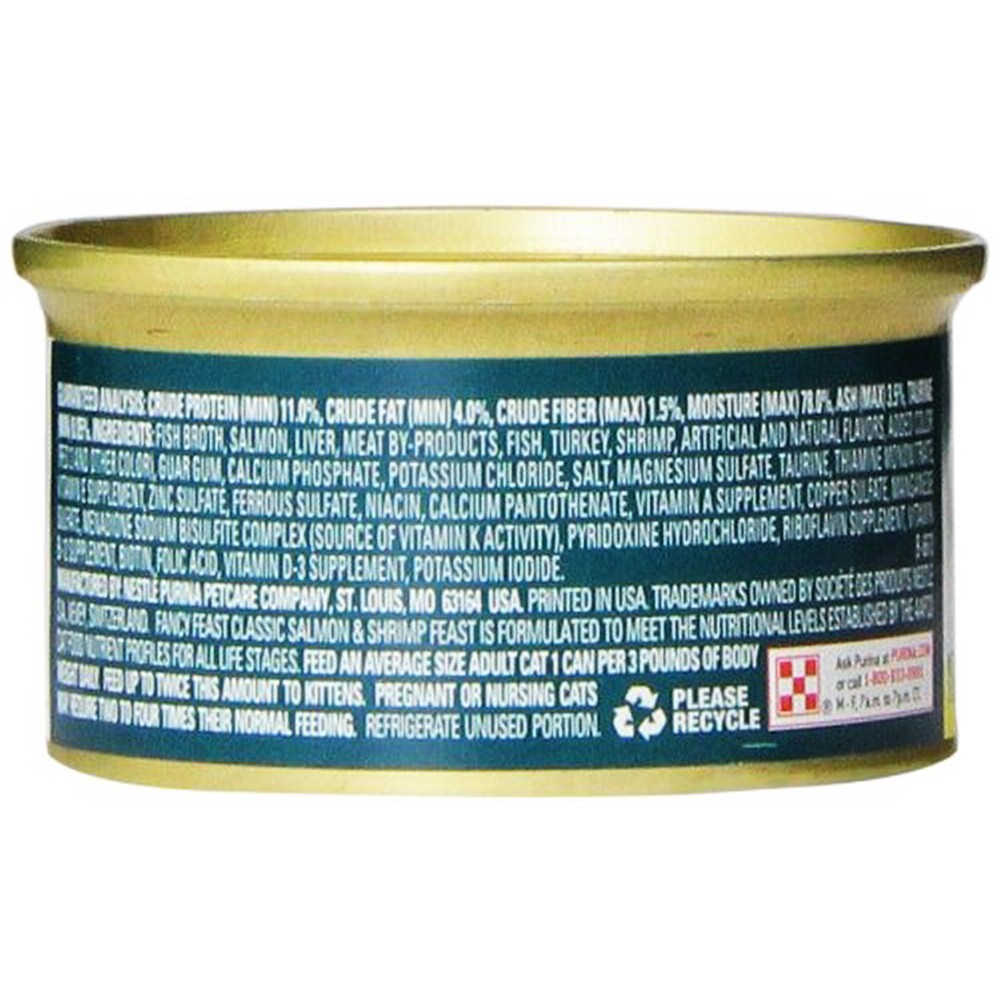 Ingredients: Classic Pat Cod, Sole & Shrimp Feast: Cod, Liver, Meat By-Products, Fish, Fish Broth, Sole, Shrimp, Artificial and Natural Flavors, Added Color, Guar Gum, Tricalcium Phosphate, Potassium Chloride, Red 3, Salt, Magnesium Sulfate, Thiamine Mononitrate, Vitamin E Supplement, Zinc Sulfate, Ferrous Sulfate, Niacin, Calcium Pantothenate, Vitamin A Supplement, Copper Sulfate, Manganese Sulfate, Menadione Sodium Bisulfite Complex (Source of Vitamin K Activity), Pyridoxine Hydrochloride, Riboflavin Supplement, Vitamin B-12 Supplement, Biotin, Folic Acid, Vitamin D-3 Supplement, Potassium Iodide. B-6671.Classic Pat Ocean Whitefish & Tuna Feast: Ocean Whitefish, Liver, Fish, Meat By-Products, Fish Broth, Tuna, Artificial and Natural Flavors, Added Color, Guar Gum, Tricalcium Phosphate, Potassium Chloride, Salt, Magnesium Sulfate, Mono and Dicalcium Phosphate, Thiamine Mononitrate, Vitamin E Supplement, Zinc Sulfate, Ferrous Sulfate, Niacin, Calcium Pantothenate, Vitamin A Supplement, Copper Sulfate, Manganese Sulfate, Menadione Sodium Bisulfite Complex (Source of Vitamin K Activity), Pyridoxine Hydrochloride, Riboflavin Supplement, Vitamin B-12 Supplement, Biotin, Folic Acid, Vitamin D-3 Supplement, Potassium Iodide. B-6675.Classic Pat Savory Salmon Feast: Salmon, Liver, Meat By-Products, Fish Broth, Fish, Turkey, Artificial and Natural Flavors, Tricalcium Phosphate, Added Color, Guar Gum, Potassium Chloride, Salt, Taurine, Magnesium Sulfate, Mono and Dicalcium Phosphate, Red 3, Thiamine Mononitrate, Vitamin E Supplement, Zinc Sulfate, Ferrous Sulfate, Niacin, Sodium Nitrite (to Promote Color Retention), Calcium Pantothenate, Copper Sulfate, Vitamin A Supplement, Manganese Sulfate, Menadione Sodium Bisulfite Complex (Source of Vitamin K Activity), Pyridoxine Hydrochloride, Riboflavin Supplement, Vitamin B-12 Supplement, Biotin, Folic Acid, Vitamin D-3 Supplement, Potassium Iodide. B-6676.
