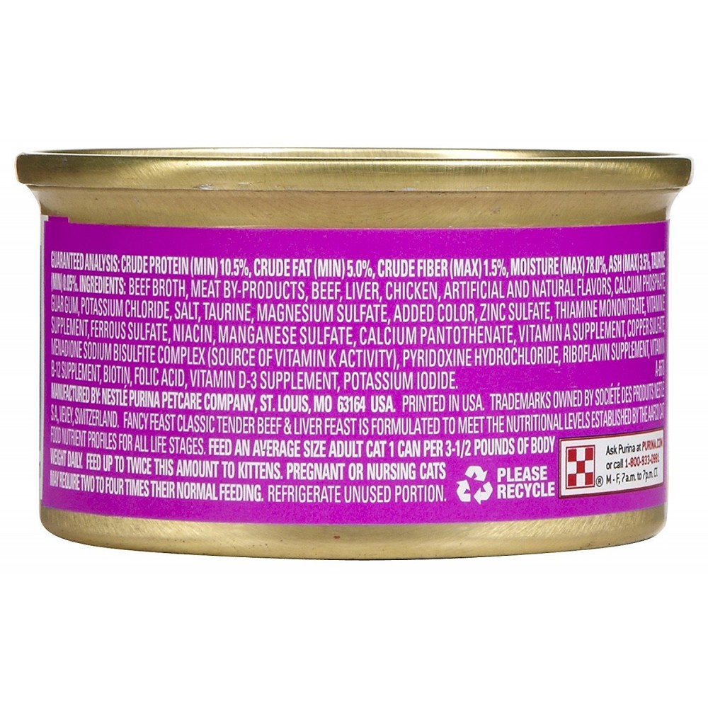 Ingredients: Beef Broth, Meat By-Products, Beef, Liver, Chicken, Artificial and Natural Flavors, Guar Gum, Tricalcium Phosphate, Potassium Chloride, Salt, Magnesium Sulfate, Taurine, Added Color, Thiamine Mononitrate, Vitamin E Supplement, Zinc Sulfate, Ferrous Sulfate, Niacin, Calcium Pantothenate, Vitamin A Supplement, Copper Sulfate, Manganese Sulfate, Menadione Sodium Bisulfite Complex (Source of Vitamin K Activity), Pyridoxine Hydrochloride, Riboflavin Supplement, Vitamin B-12 Supplement, Biotin, Folic Acid, Vitamin D-3 Supplement, Potassium Iodide. B-6678.