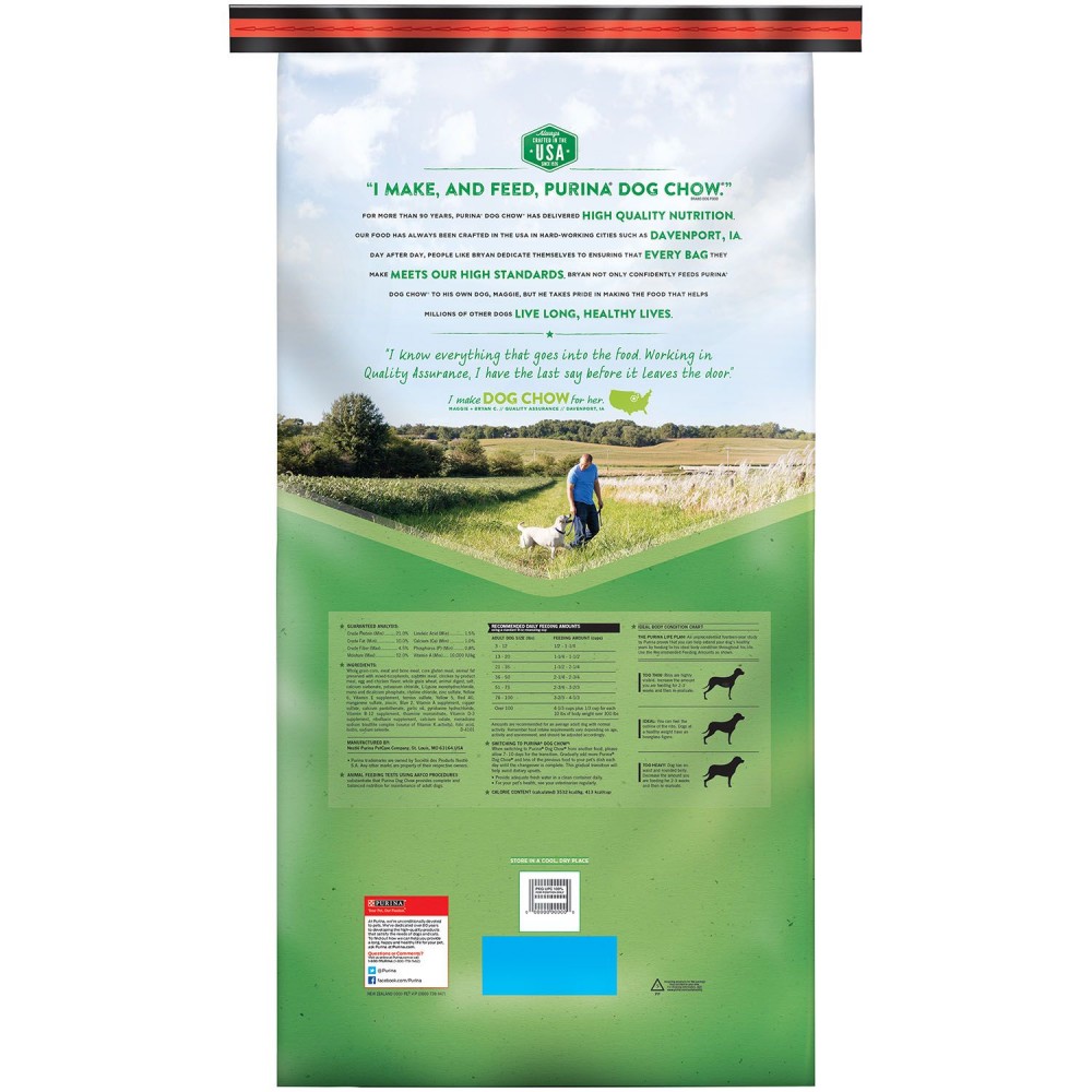 Purina Dog Chow is carefully crafted in the USA by our own employees who are dedicated to making sure every bag meets our high-quality standards they dont just make Dog Chow, they trust it enough to feed it to their own dogs every day. Purina Dog Chow Complete Adult is made with high-quality protein and provides 100% complete and balanced nutrition dogs need to live a long and healthy life.