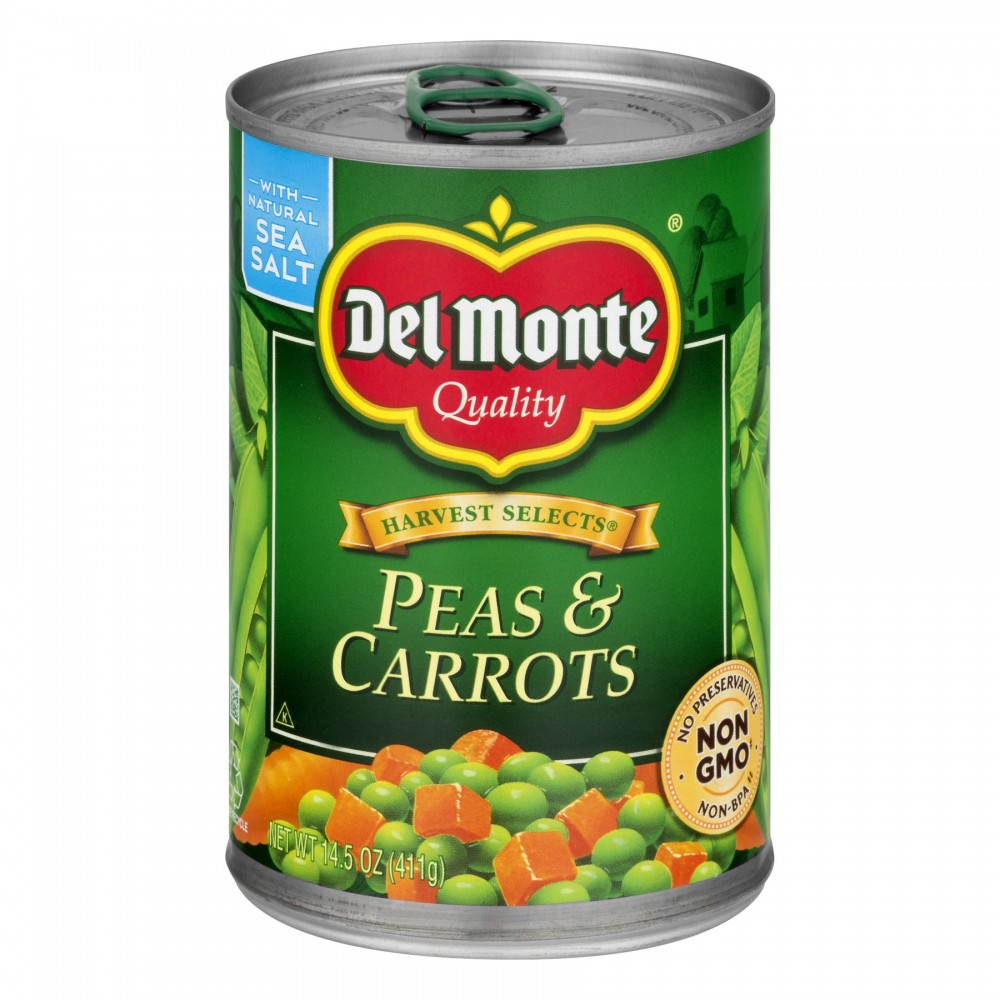 Del Monte Peas & Carrots. Made with natural sea salt. Contains no preservatives. Free from GMOs.